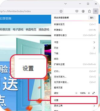 1. 打开火狐游览器,在最右上方选择[三条线]图标, 然后选取[设定]。